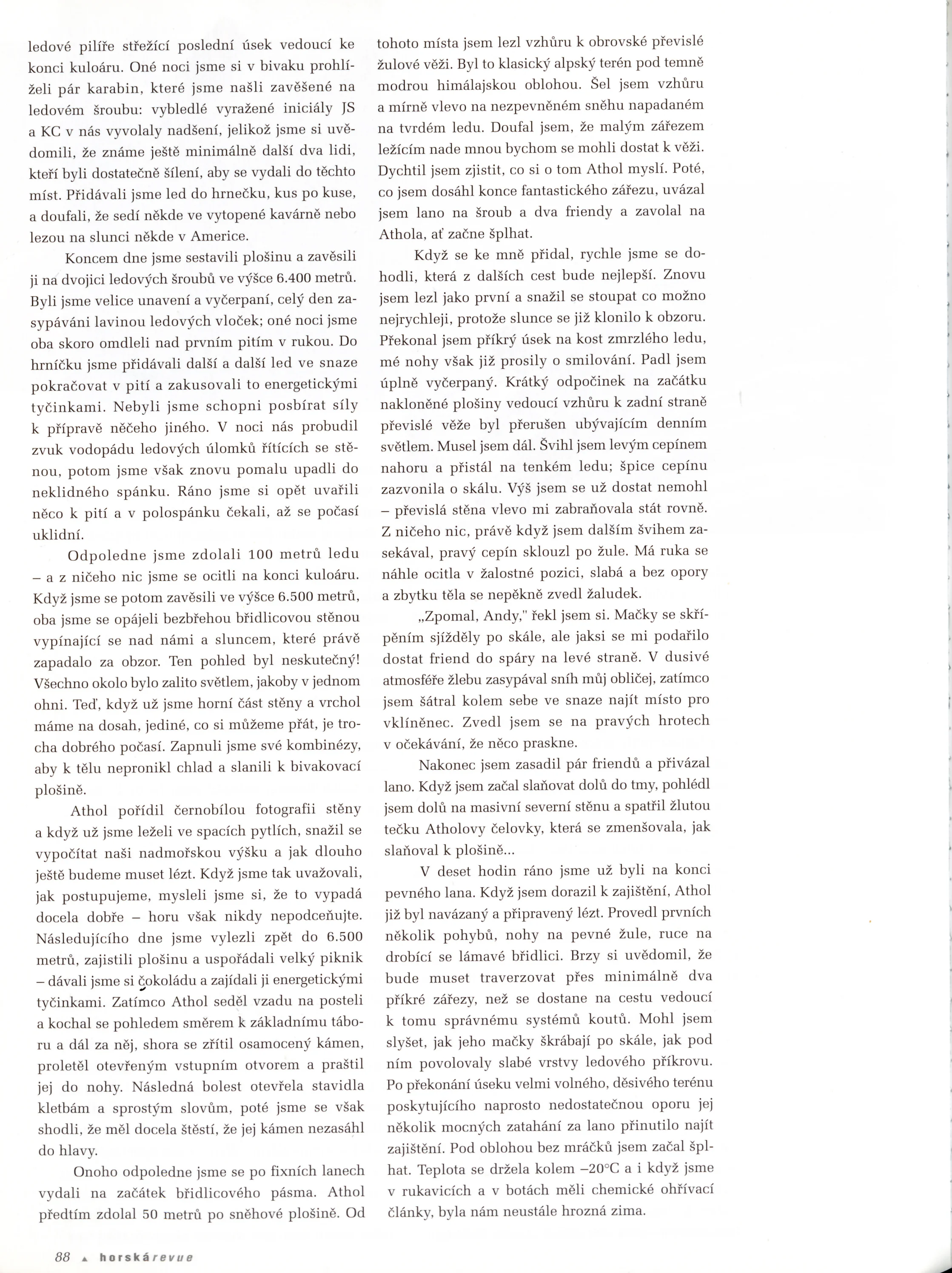 In February 2000, Horska Revue magazine (Czech Republic) published my account of the ascent of Thalay Sagar's north face I made with Athol Whimp in 1997. What follows is the article itself.
